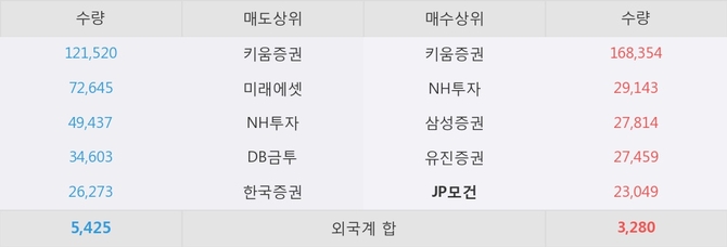거래원 동향은 JP모건, NH투자, 삼성증권 등이 매수 상위 목록에 나타나고 있다.