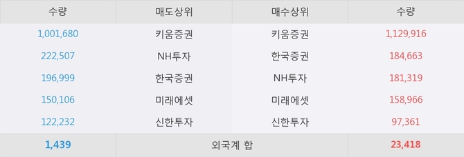 거래원 동향은 NH투자, 미래에셋 등이 매수 상위 목록에 나타나고 있다.