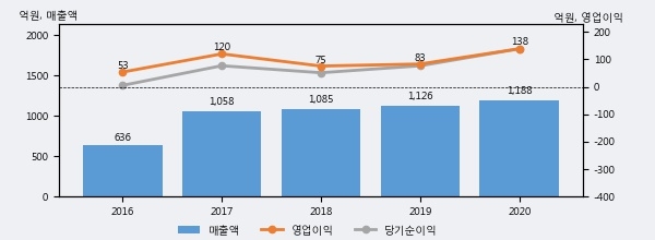 최근 3년간의 실적을 살펴보면 안정적 성장세를 보이고 있다. 최근 3년간 매출로 볼 때 매년 꾸준히 증가하고 있고 그 증가폭도 확대되고 있다.
