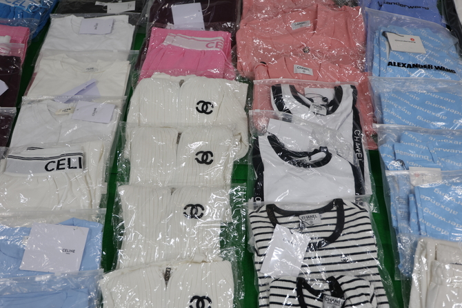 의류 2천여점은 12억원 상당이었다. 이들은 상표법 및 관세법 위반 혐의로 적발됐다.