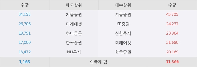 거래원 동향은 미래에셋, 하나금융, NH투자 등이 매도 상위 목록에 나타나고 있다.