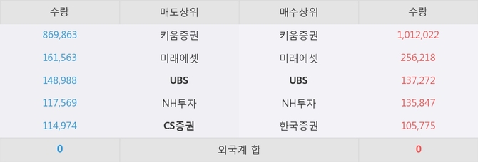 거래원 동향은 UBS, 미래에셋, NH투자 등이 매수 상위 목록에 나타나고 있다. 한편, 매도 창구 상위에는 UBS과 CS증권이 눈에 띄고 있다.