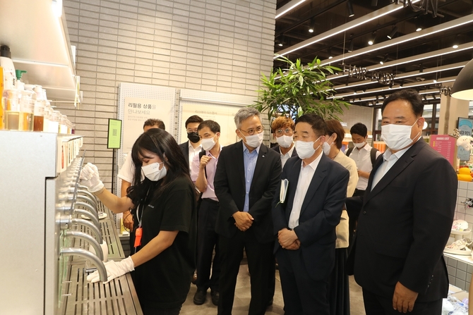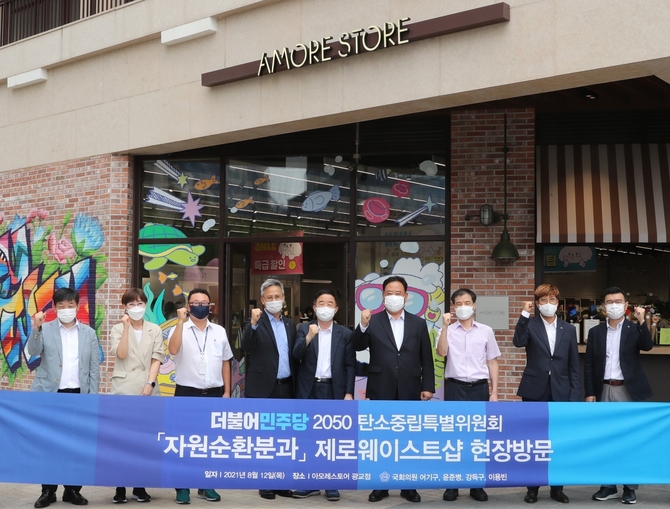 (조세금융신문=홍채린 기자) 더불어민주당 탄소중립특별위원회 자연순환분과는 8월 12일 '제로웨이스트샵과 다회용기 사용의 활성화'를 위한 현장방문 및 간담회를 진행하며, 대표 우수 기업 사례로 아모레퍼시픽에서 운영하는 '아모레스토어 광교'를 방문했다.