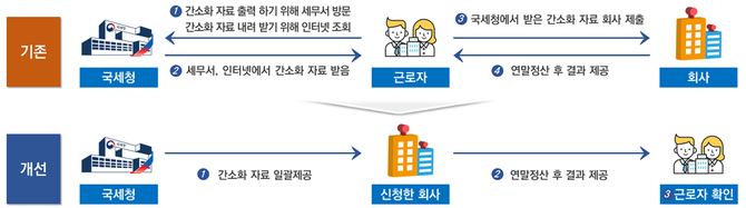 그동안 연말정산을 하려면 근로자가 인터넷에서 간소화 자료를 내려 받아 회사에 제출했어야 하며, 고령자․외국인 등 인터넷 사용이 어려운 근로자와 부양가족의 경우 자료 출력을 위해 세무서에 찾아야 했다.