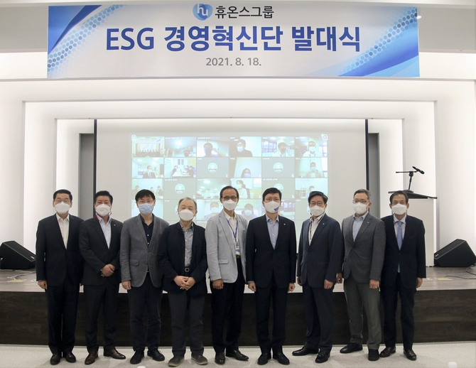 휴온스그룹 ESG경영혁신단은 휴온스그룹 ESG위원회와 ESG임원협의회, ESG실무진으로 구성했으며, 휴온스글로벌 대표이사 윤성태 부회장이 단장을 맡았다.