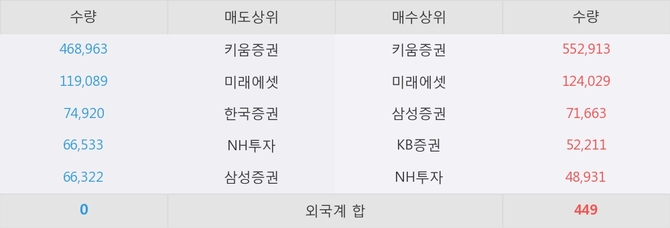 거래원 동향은 미래에셋, 삼성증권, NH투자 등이 매수 상위 목록에 나타나고 있다.