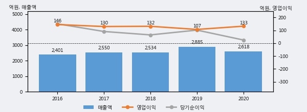 동아화성의 2020년 매출액은 전년대비 -9.3% 줄어든 2618억원이고, 영업이익은 전년대비 23.6% 늘어난 133억원을 기록했다. 이 회사의 매출액 증감률과 영업이익 증감률은 각각 코스닥 하위 33%, 상위 38%에 해당된다.
