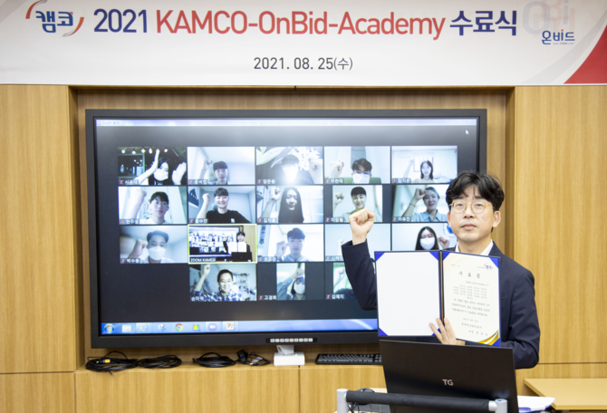 (조세금융신문=홍채린 기자) 캠코는 25일 오후 1시 BIFC 46층 시청각미디어센터에서 ‘캠코-온비드-아카데미(KAMCO-OnBid-Academy)’ 1기 20명이 온라인으로 참석한 가운데, 비대면 수료식을 개최했다.