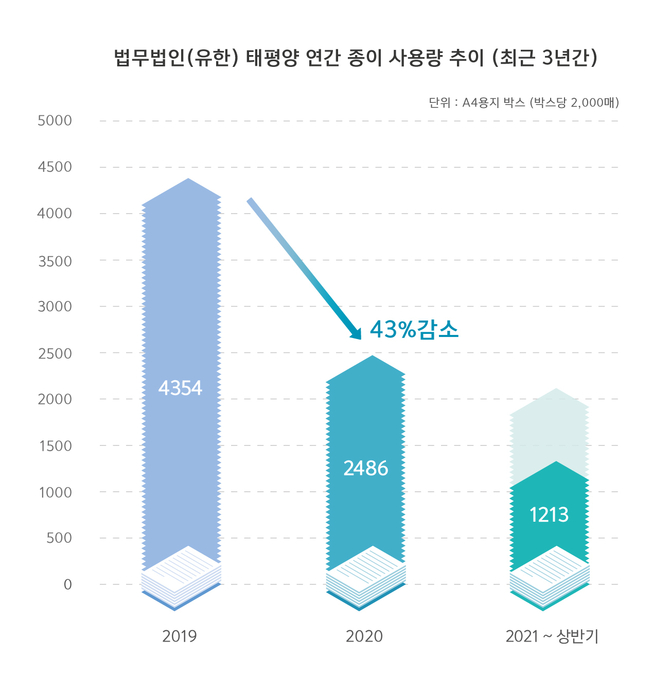 태평양은 제도 시행 3년차를 맞는 2022년엔 종이 사용량을 시행 전의 3분의1 수준으로 줄일 계획이다.