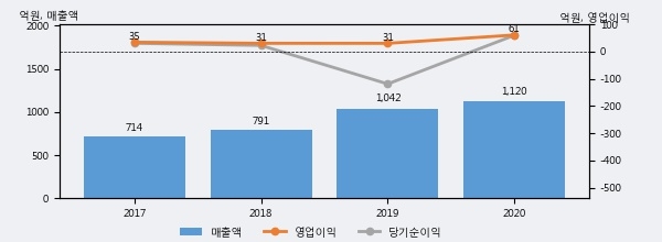 최근 3년간의 실적을 살펴보면 안정적 성장세를 보이고 있다. 최근 3년간 매출로 볼 때 매년 증가하고 있다. 다만 최근에 그 증가폭이 다소 감소하고 있다.