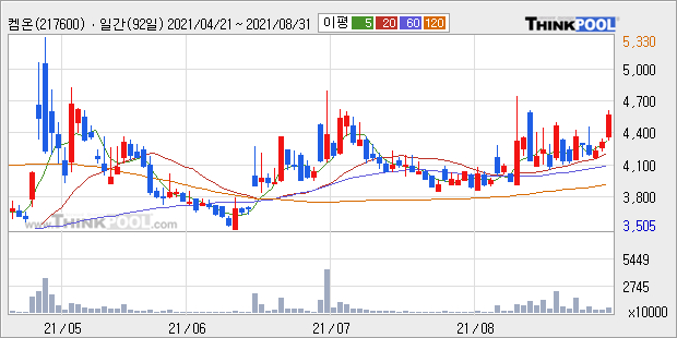 켐온의 2020년 매출액은 전년대비 18.5% 늘어난 248억원이고, 영업이익 또한 전년대비 28.6% 늘어난 24억원을 기록했다. 이 회사의 매출액 증감률과 영업이익 증감률은 각각 코스닥 상위 24%, 상위 37%에 해당된다.