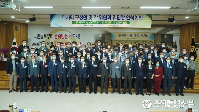 (조세금융신문=이지한 기자) 한국세무사회(회장 원경희)는 9일 오전 11시 서초동 한국세무사회 6층 대강당에서 세무사제도 창설 60주년을 맞아 기념식을 대신해 이사회 구성원 및 각 위원회 위원장 연석회의를 열었다.
