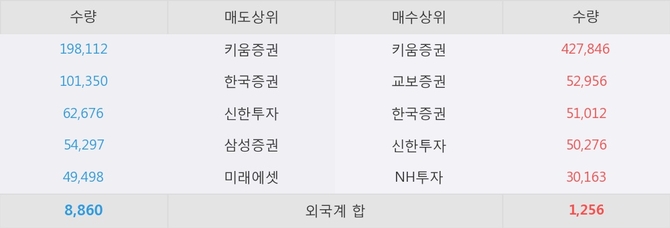 이 시각 주요 거래원은 NH투자, 키움증권, 교보증권 등이 매수 상위 창구에 자리하고 있다.