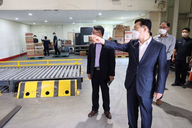 (조세금융신문=홍채린 기자) 성태곤 서울본부세관장은 13일 경인항 소재 서울세관 국제이사화물 통관센터를 방문하여 현안 사항을 보고 받고, 업무 현장을 돌아보며 코로나19 방역상황을 점검했다.