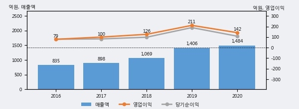 최근 3년간의 실적을 살펴보면 안정적 성장세를 보이고 있다. 최근 3년간 매출로 볼 때 매년 꾸준히 증가하고 있다. 다만 최근에 그 증가폭이 다소 감소하고 있다.