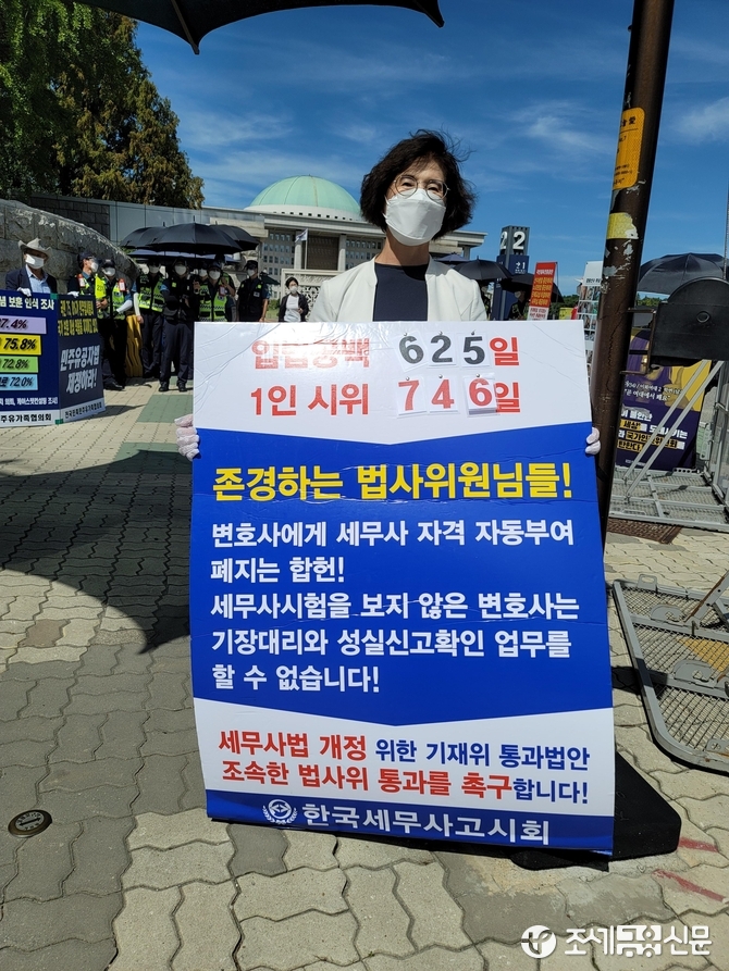 (조세금융신문=김양기 기자) 지난 7월 기재위를 통과한 세무사법 개정안이 법사위에 계류중인 가운데 세무사들이 매주 국회앞에서 세무사법 개정안 통과를 촉구하는 1인시위를 벌이고 있다.