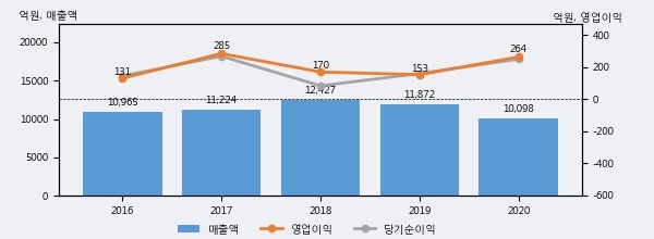 남해화학의 2020년 매출액은 1조 98억으로 전년대비 -14.9% 하락했고, 영업이익은 264억으로 전년대비 72.1% 상승했다. 이 회사의 매출액 증감률과 영업이익 증감률은 각각 코스피 하위 21%, 상위 19%에 해당된다.
