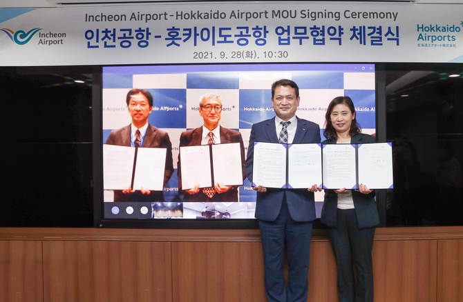 (조세금융신문=홍채린 기자) 인천국제공항공사는 포스트코로나 대비 항공노선의 조속한 운항 재개를 촉진하기 위해 28일 공사 회의실에서 일본 홋카이도공항과 '인천-홋카이도 노선 이용촉진 등을 위한 업무 협약(MOU)'을 체결했다고 밝혔다.