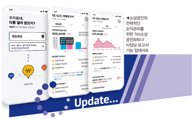 NH소상공인파트너 개발과 운영을 담당하고 있는 로움아이티 관계자는 “사업을 하면서 가장 알고 싶은 정보는 무엇인지, 어떤 서비스를 제공받고 싶은지 등 주변 사장님과의 인터뷰로 실제 사용자가 필요로 하는 기능을 제공하기 위해 업데이트를 결정하게 되었다”고 밝혔다.
