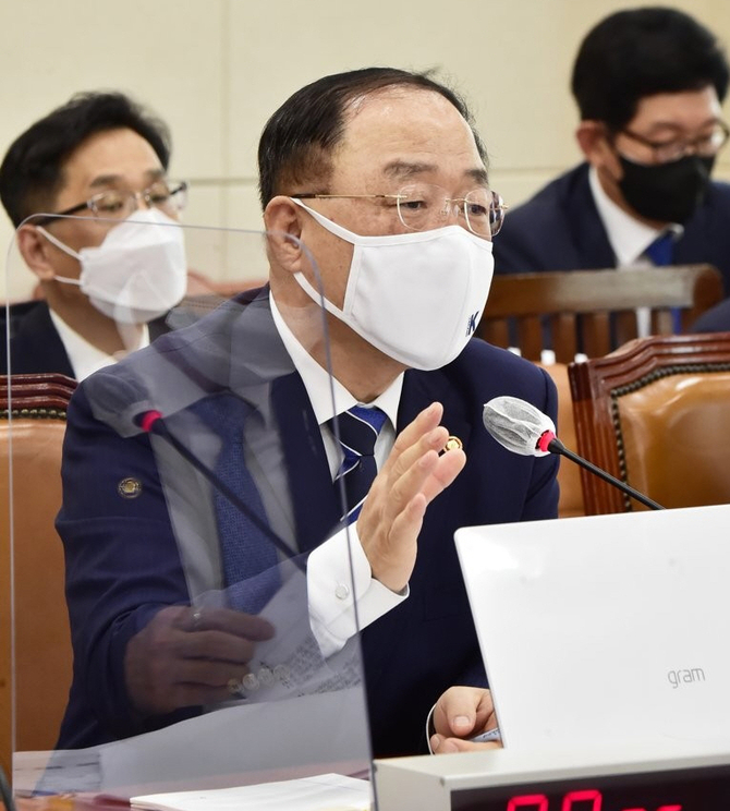 홍 부총리는 이날 국회 기획재정위원회 국정감사에서 올해 20조원 가량이었던 지역사랑상품권 예산을 내년 6조원으로 줄인 것에 대해 “신종 코로나바이러스 감염증(코로나19) 등으로 어렵다보니 중앙정부가 3년 정도 한시적으로 할인 비용을 도와주기로 한 것”이라고 설명했다.