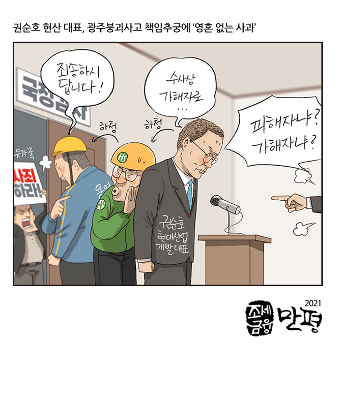 [조세금융만평] “진정성 없는 사과”…권순호 HDC현산 대표, 국감장서 광주 붕괴참사 질타