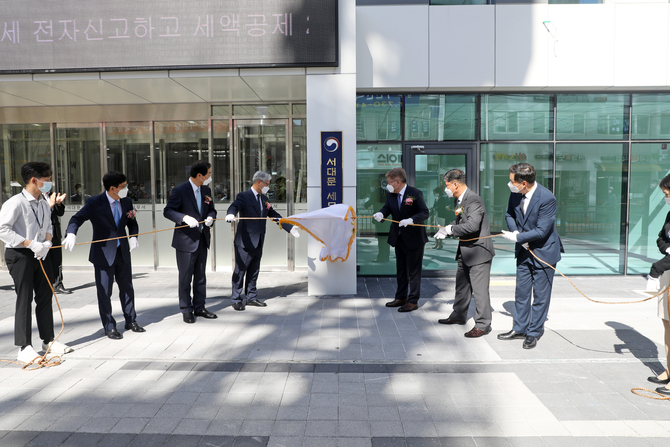 (조세금융신문=고승주 기자) 임성빈 서울지방국세청장이 13일 서대문세무서를 방문해 지역인사들과 더불어 현판 제막식에 참여했다.