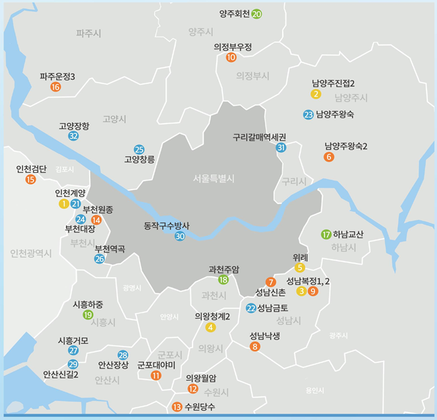 지구별로는 ▲ 파주운정2 2천150호 ▲ 인천검단 1천160호 ▲ 남양주왕숙2 1천410호 ▲ 의정부우정 950호 ▲ 군포대야미 950호 ▲ 성남낙생 890호 ▲ 의왕월암 830호 ▲ 성남복정2 630호 ▲ 수원당수 460호 ▲ 부천원종 370호 ▲ 성남신촌 300호 등이다.