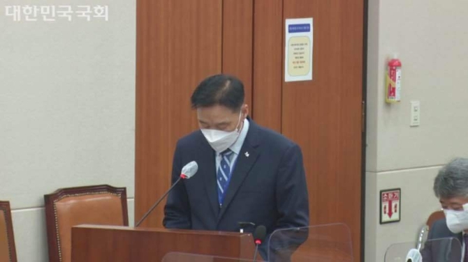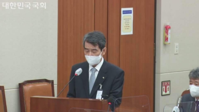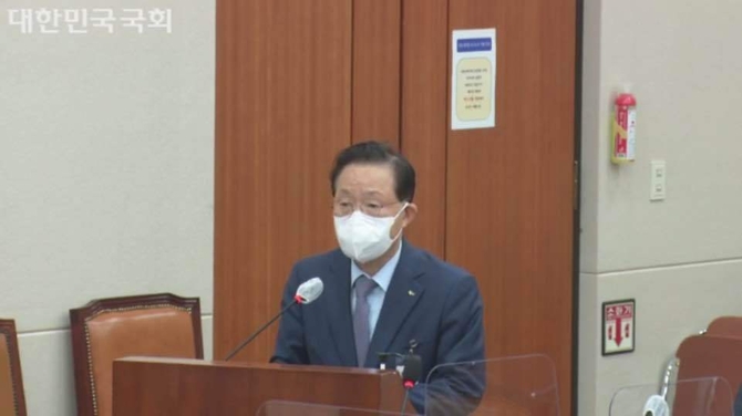 사진은 이날 윤대희 신용보증기금 이사장, 이동걸 산업은행 회장, 윤종원 IBK기업은행장, 이계문 서민금융흥원 원장이 국감에 출석해 인사말과 업무현황을 발표하고 있는 모습.