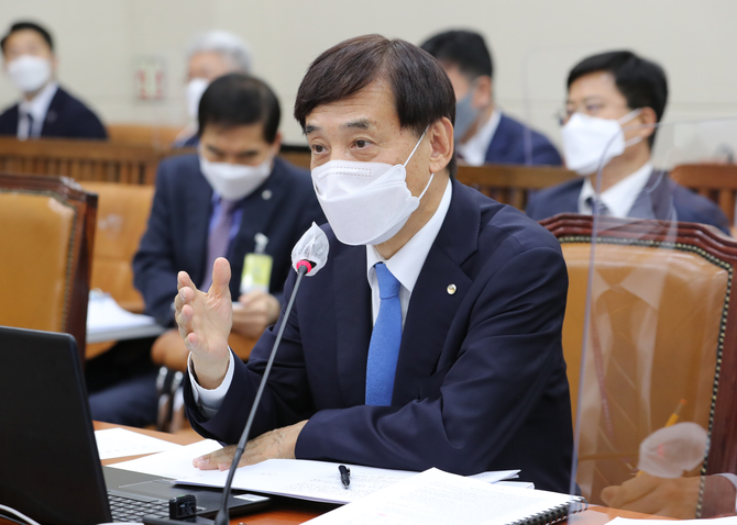 15일 이 총재는 국회 기획재정위원회 국정감사에 출석해 “경제가 지금 예상대로 흘러간다면 오는 11월에는 특별히 큰 요인이 없는 한 금리 인상을 고려할 수 있다”고 말했다.
