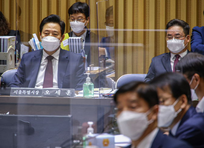 오세훈 서울시장은 19일 시청에서 열린 국회 행정안전위원회의 서울시 국정감사에서 주식 백지신탁을 하고 싶었지만 시스템 개선이 필요해 이의를 제기했다고 밝혔다.