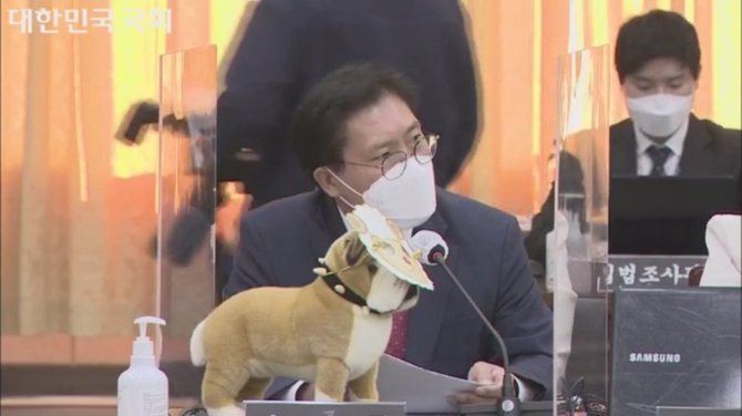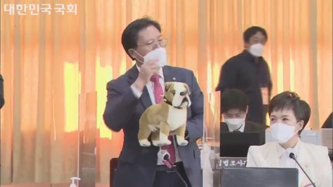 이날 송석준 국민의힘 의원이 양의 탈을 쓴 불독 인형 한 마리를 들고 나오면서 국감장에 고성이 오갔다. 송 의원은 대장동 의혹이 ‘양두구육’, 양의 탈을 쓰고 탐욕스러운 개의 형태를 보인다고 주장하며 해당 인형을 테이블 위에 올려놨다.