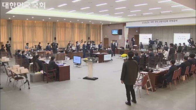 그러자 여야 양측 간에 고성이 오가면서 국감장은 아수라장이 됐고 결국, 시작 10분만에 중지되는 상황을 맞았다.