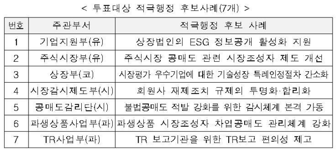 또 일반 국민이 적극행정 우수직원을 추천할 수 있는 온라인 창구도 거래소 홈페이지(www.krx.co.kr)에 개설한다.