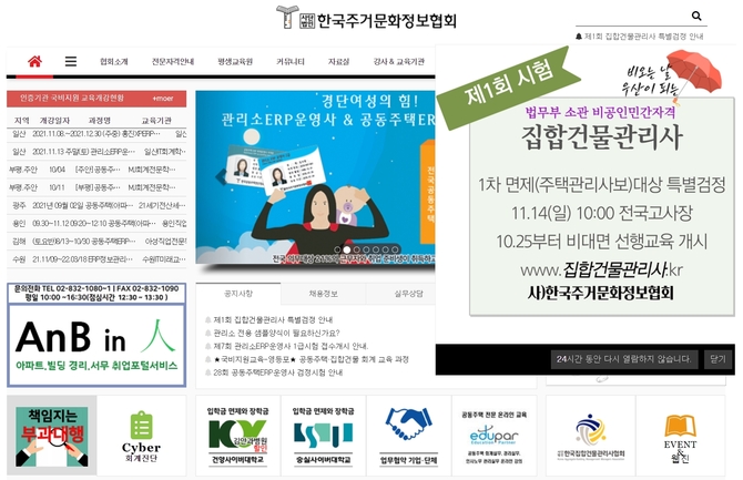 교육·접수·응시 절차 등 자세한 사항은 주거문화정보협회 홈페이지를 참조하면 된다. 협회는 집합건물관리사협회와 업무협약을 맺고 교육은 열린사이버대학과 함께 진행한다.