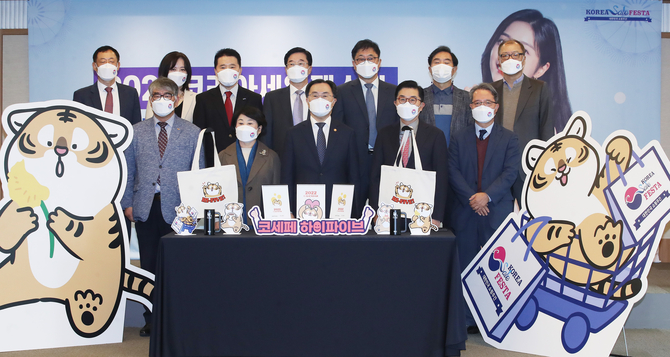 문 장관은 간담회 이후 추진위와 함께 코세페 수익을 어려운 이웃과 나누는 '하이파이브(Hi-Five) 나눔 캠페인', 또 판매자와 소비자가 서로를 응원하는 '엄지척 챌린지' 발족식을 했다.