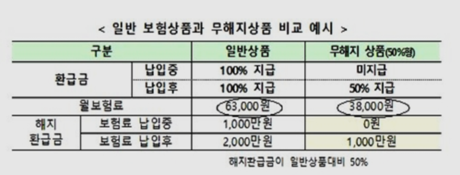 무·저해지보험은 보험료가 일반 보험상품보다 10∼40% 저렴하지만, 중도해지 시 계약자에게 돌아가는 환급금이 전혀 없거나 일반 상품보다 적어 소비자의 주의가 필요하다.