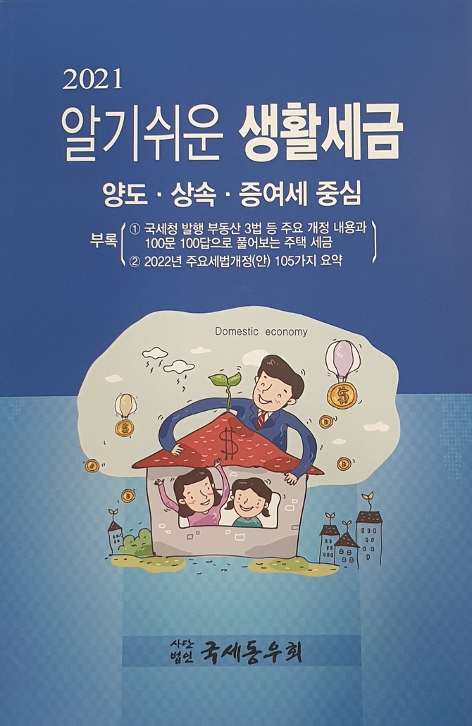 (조세금융신문=김영기 기자) 국세동우회(회장 전형수)는 지난 10월 '2021 알기쉬운 생활세금' 단행본을 발간하여 회원들과 업계에 배포했다. 주요 내용은 최근 이슈가 된고있는 양도세 상속세 증여세를 중심으로 집필되어 관련 업계로 부터 좋은 반등을 보이고 있다.