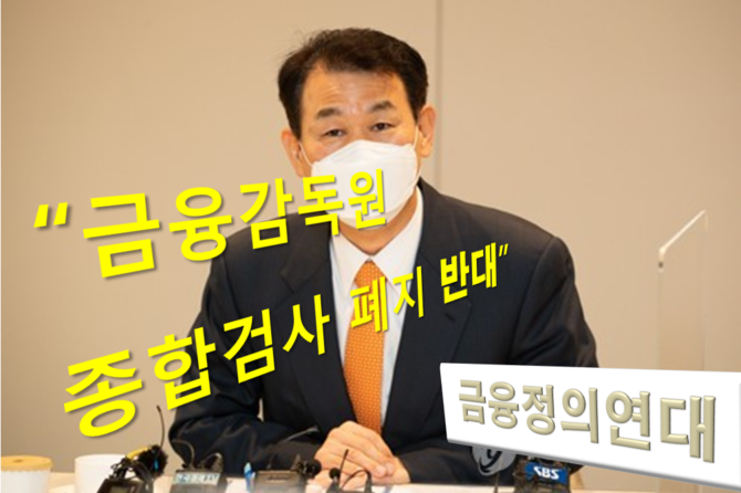 금융정의연대는 "2015년 금융위원회가 규제 완화 조치를 시행하면서 종합검사가 폐지된 적이 있고 이는 현재의 대규모 사모펀드 피해 양산이라는 쓰나미를 일으켰다"며 "규제 완화가 어떤 결과를 야기했는지 알면서도 반복하는 것은 금융회사의 불법행위에 동조하는 것"이라고 말했다.