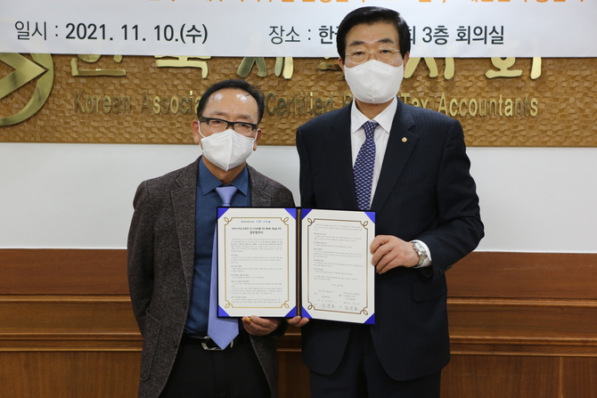 (조세금융신문=이지한 기자) 한국세무사회(회장 원경희)와 (주)더존테크윌(대표이사 김진호)은 지난 10일 오후 한국세무사회관에서 ‘세무사사무실 관리 및 수익증대 플랫폼 개발’을 위한 업무협약을 체결했다.