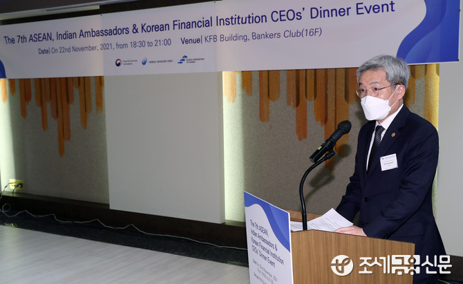 고승범 금융위원장은 영문 축사를 통해 아세안·인도와 한국 간 역사·문화적 공통점을 언급하며, 상호 간 금융 분야 협력을 통해 발전을 이루어나가고 있다고 강조했다.