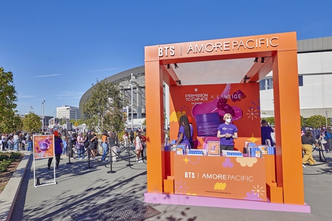 지난 11월 27일부터 28일까지 미국 로스앤젤레스 소파이(SoFi) 스타디움에서는 방탄소년단의 'BTS PERMISSION TO DANCE ON STAGE-LA' 콘서트가 개최됐다. 이번 LA 공연에 스폰서로 참여한 아모레퍼시픽은 고객 참여 부스 운영 및 컬래버레이션 홍보 영상 상영 등을 통해 현지 고객들과 만났다. 오는 12월 1일부터 2일까지 개최되는 나머지 콘서트에도 부스 운영 및 영상 상영을 진행할 예정이다.