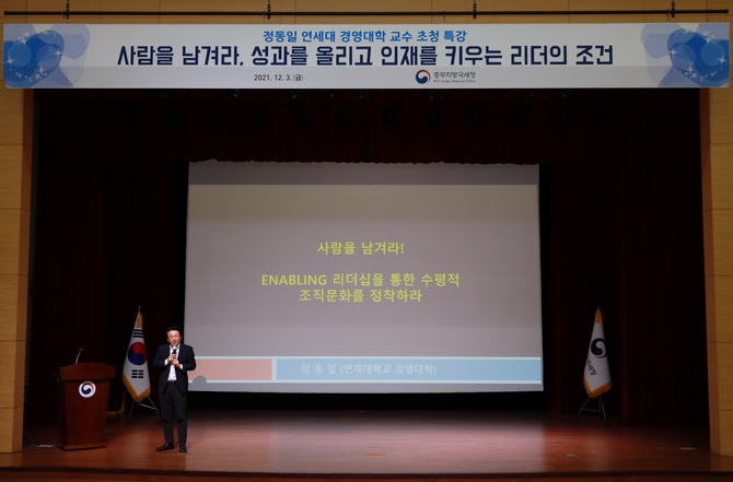 (조세금융신문=고승주 기자) 중부지방국세청(청장 김재철)이 3일 대강당에서 정동일 연세대 교수를 초청, ‘사람을 남겨라, 성과를 올리고 인재를 키우는 리더의 조건’을 주제로 특강을 실시했다.