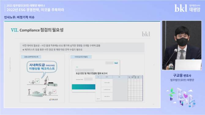 이날 웨비나에서는 2022년 달라지는 국내외 ESG 트렌드와 요구사항들에 대해 짚고, 기업들이 내년 경영전략에 반영할 주제들을 살펴봤다.