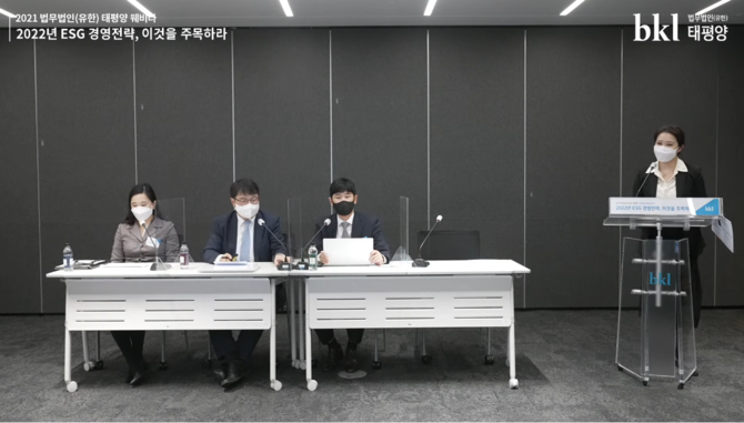 한편, 이날 웨비나는 국내외 기업법무 및 M&A, 환경, 노동, 공정거래, 금융, 컴플라이언스 분야 등의 전문가 20여 명을 주축으로 하는 태평양 ESG랩(ESG Lab for Tomorrow)이 중심이 되어 진행됐으며, 기업 관계자 200여 명이 참여하는 등 뜨거운 관심이 쏠렸다,