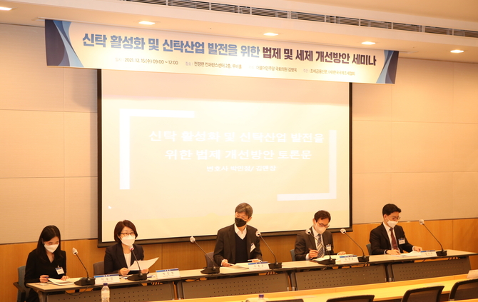 이어 “신탁이 우리 생활과 밀접한 관계가 있고 신탁에 대한 국민들의 관심도 폭발적으로 확대되고 있다는 뜻”이라며 “관심이 높아지고 있는 사회적 변화에도 불구하고 신탁관련 제도들이 뒷받침되지 않아서 신탁산업이 발전하지 못하고 있다는 전문가들의 지적을 결코 허투루 들어서는 안 될 것”이라고 전했다.