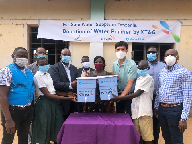 탄자니아의 식수위생 문제를 개선하기 위해 KT&G는 2억 4천만 원 상당의 친환경 정수장치 1300대를 지원한다. 이를 통해 연간 최대 3억 4천만 리터(L)의 깨끗이 정수된 물을 약 26만 명의 학생들이 마실 수 있게 된다.