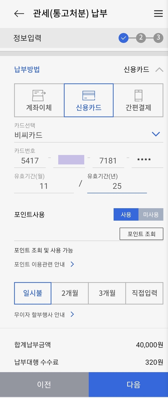 관세청은 "연말연시를 맞아 해외직구의 증가 등으로 신용카드 포인트로 관세를 납부하는 납세자가 많을 것으로 예상했다"며 "납세편의를 위해 포인트 납부 카드를 지속적으로 확대해 나갈 예정"이라고 밝혔다.