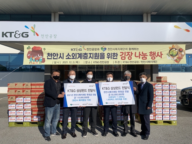 ‘상상펀드 연말 나눔’ 행사는 코로나19와 한파로 힘든 겨울을 보내는 취약계층을 돕기 위해 지역본부, 공장 등 KT&G 전국기관에서 연말까지 진행하는 사회공헌 활동이다.