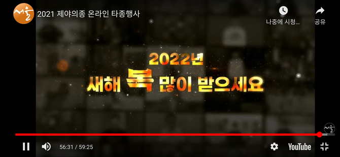 올해 제야(除夜)의 종 타종 행사는 코로나19 여파로 인해 지난해에 이어 온라인으로 열렸다.