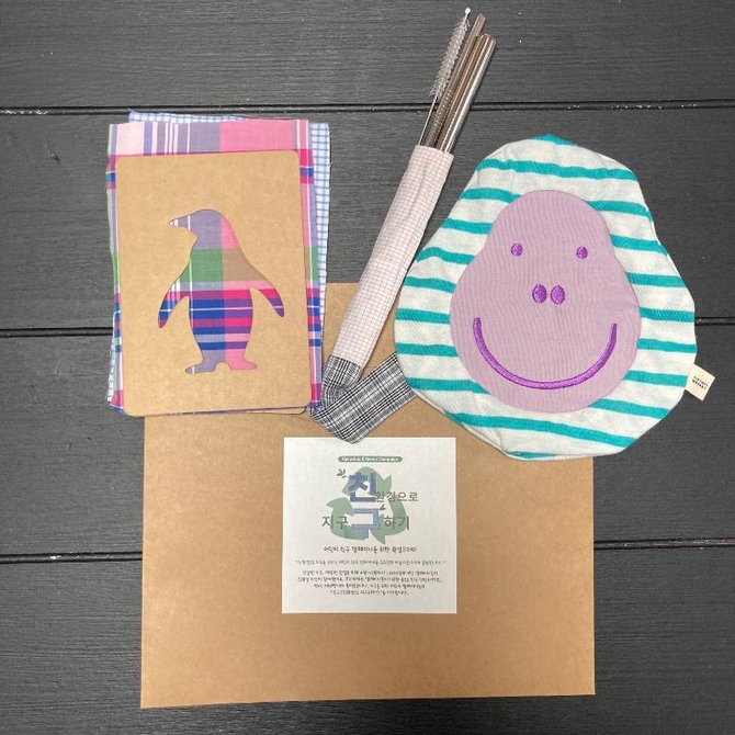 이번 환경 키트에는 아이들이 재미있고 의미 있는 방식으로 업사이클을 경험할 수 있도록 셔츠 및 남방, 면 티셔츠를 활용한 캐릭터 낮잠 쿠션, 멸종위기 동물엽서, 다회용 빨대 세트, 환경교육 동화책 등을 포함했다.
